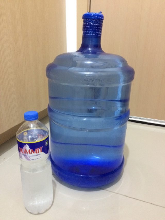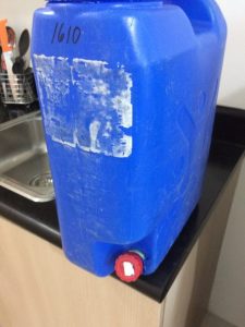 水屋に電話するとこの水が入った大きなポリタンクを部屋まで運んできてくれます。