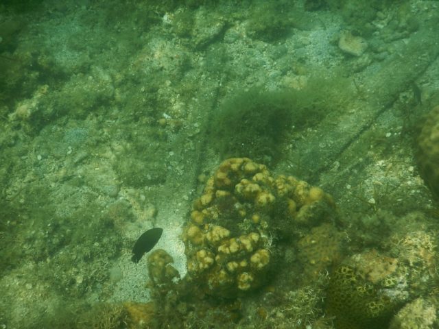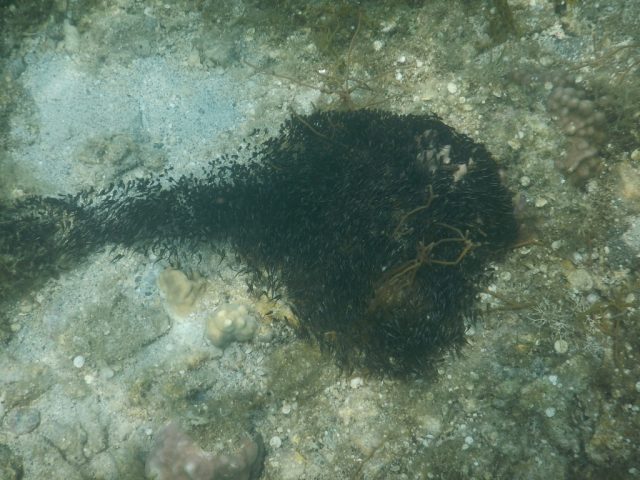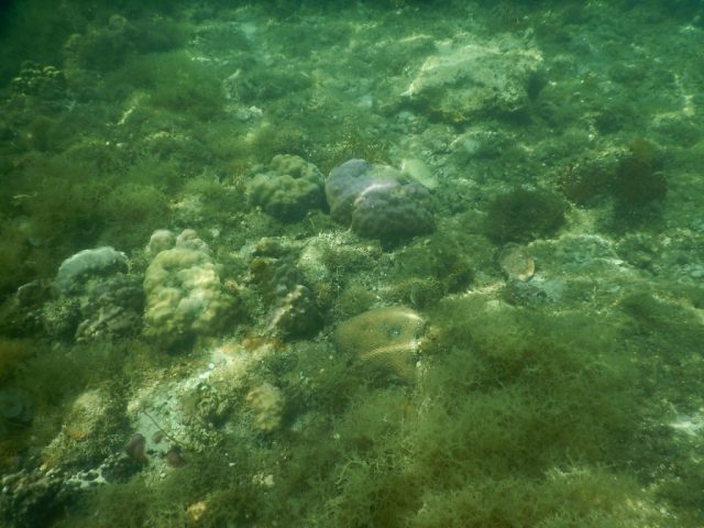 海の中ですが、珊瑚の死骸か何かの海藻なのかよく分かりませんが、砂浜ではなく岩や何かがいろいろ見れました。