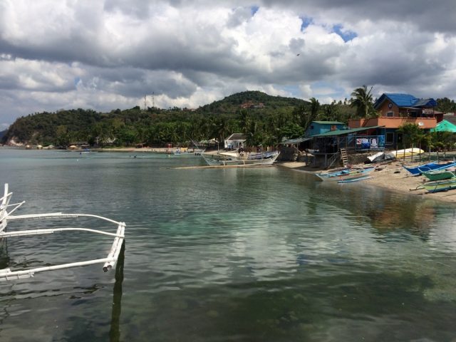 港からの景色。奥に見えるのが公共のアニラオのビーチです。