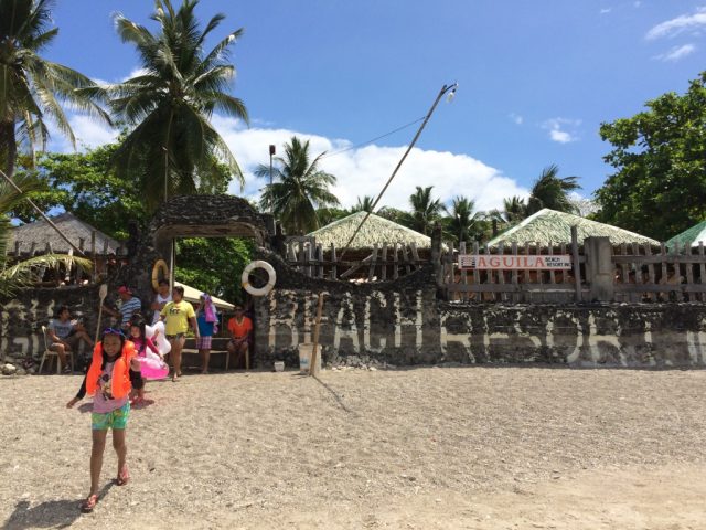 この浜辺のうらにはAGUILAというビーチリゾートの敷地。ここからビデオケ(Videoカラオケ)の歌声がずっと鳴り響いてきてました。