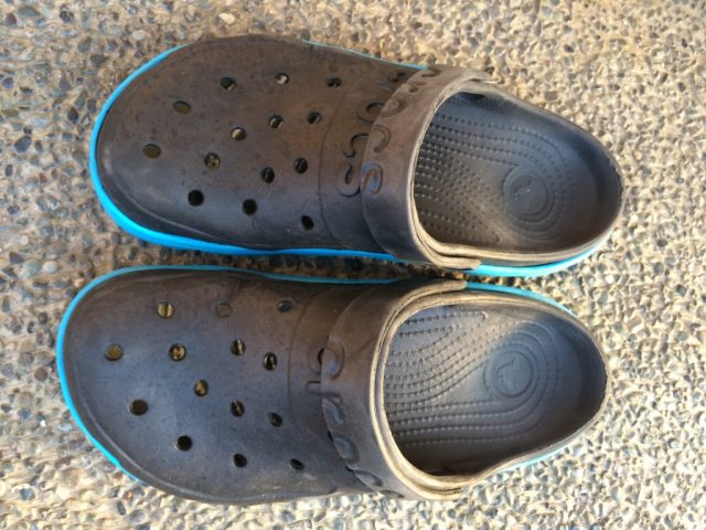 商店のおばあちゃんに勧められたクロックスのパチモノ。250ペソなり。