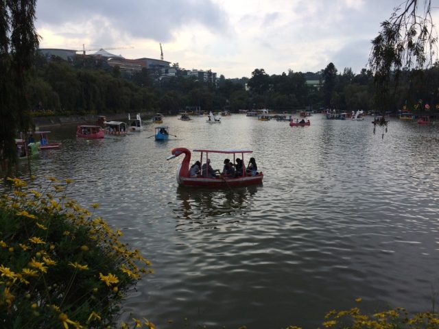 この池はボートで人気でした。100ペソと聞こえてきたのですが、30分か1時間か時間はわかりません。カップルで来るのにいい場所ですね。