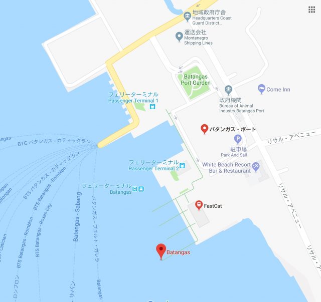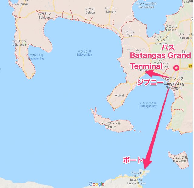 マニラの位置するルソン島からプエルトガレラのあるミンドロ島への交通の拠点、バタンガス(Batangas)。場所はこちら。