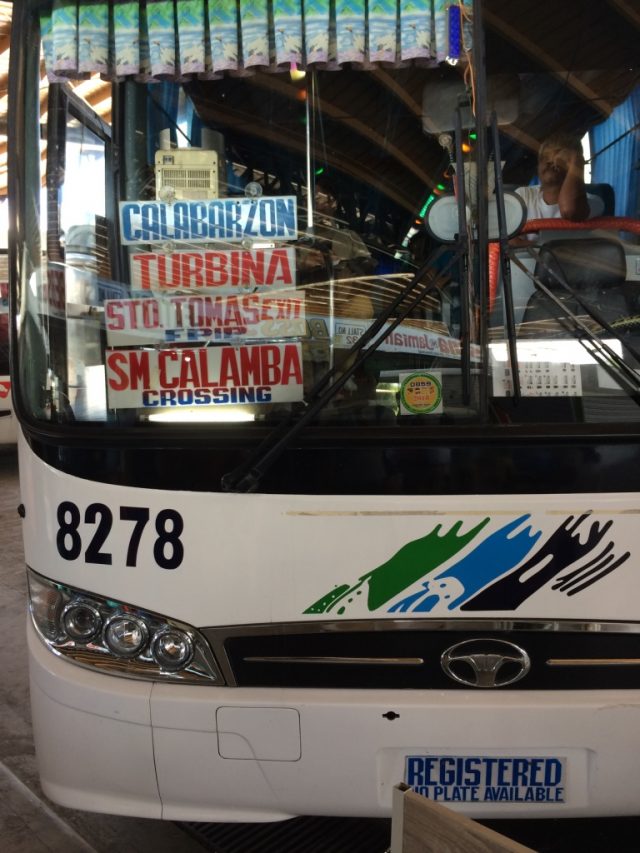 バスのフロントにTurbinaとSM CALAMBAと書かれているので簡単に見つけられました。