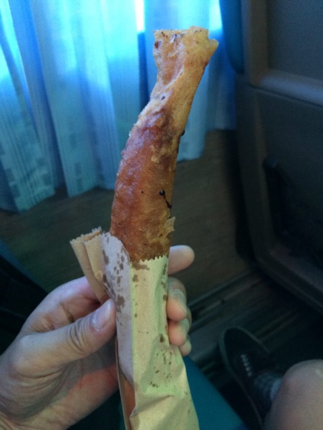 バスの中では物売りもたくさんいます。このトロンは25ペソ。