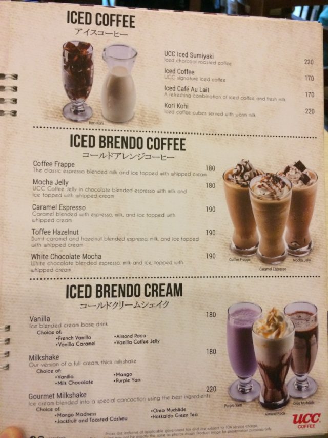 Ichiban Blendだと140ペソ。その他メニューはこちら。