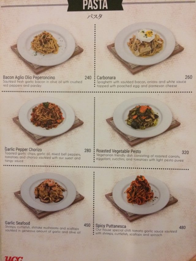 一番安いパスタでも240ペソ + サービス税ですから、他店より高いです。それでもこの混みようなので、それだけ品質に自信があるということでしょう。