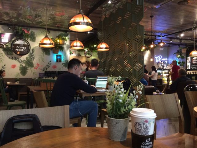 僕の住んでいるエリアではオルティガスのSM Megamallの中にあるカフェが一番近いのですが、Seattle’s Best Coffeeの席は硬い木の椅子が多いので、あまり行く気になれず。さらに、WiFiが使えないこともあり。