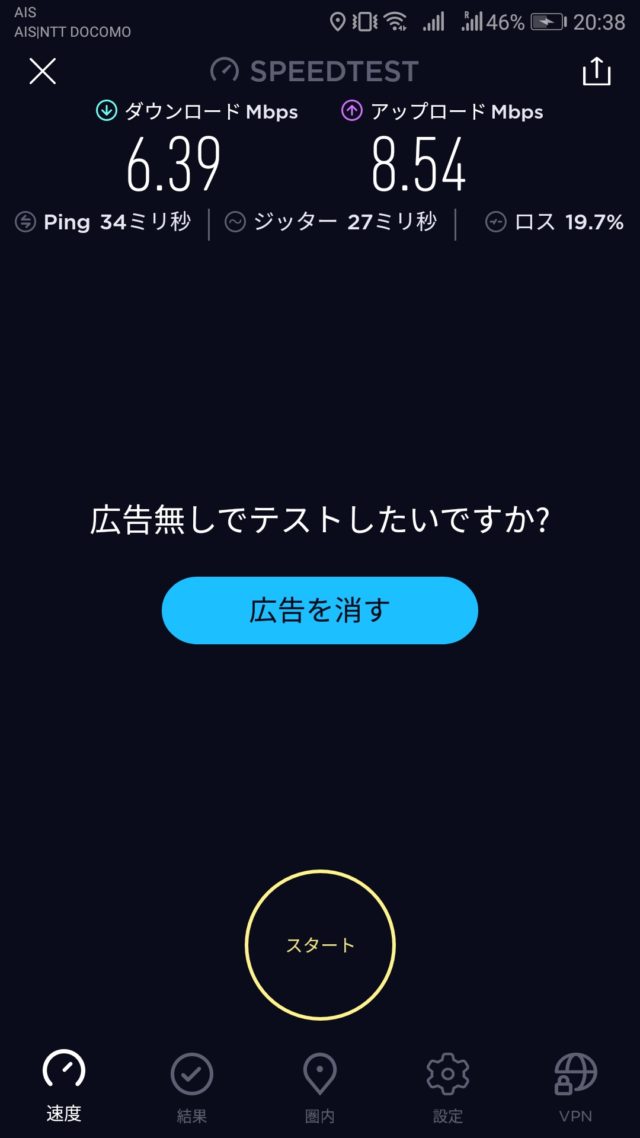 爆速とまではいかないですが、動画を見るのに十分な速度は出てました。