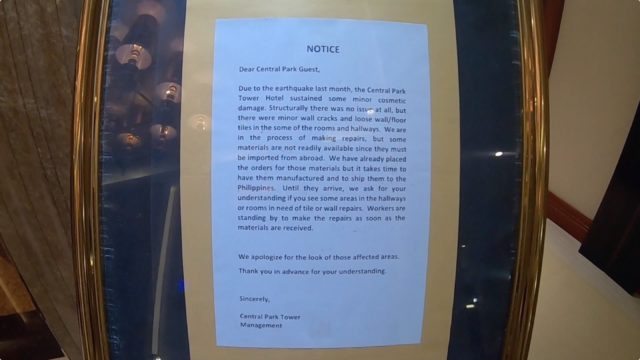 過去にAirbnbで新築のコンドミニアムに泊まったときも頻繁にこういったタイル剥がれは見てきたので、それほど驚かなかったのですが、どうも、2ヵ月前に起きた地震の影響によるもののようです。というのも、