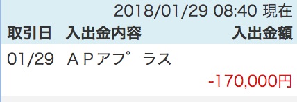 はい、確かにアプラスから17万円の引き出されていました