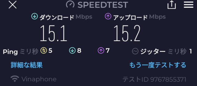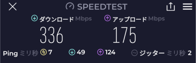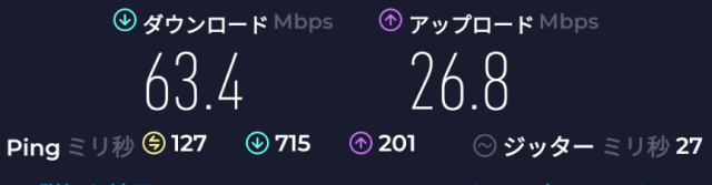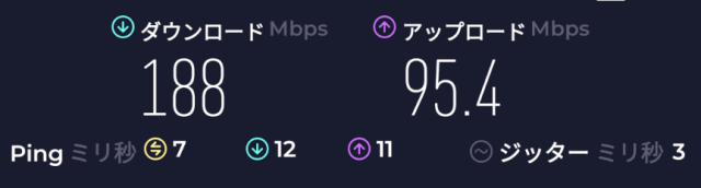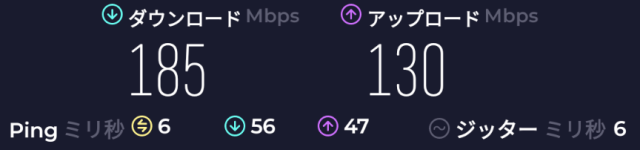 速度: Download: 185Mbps、Upload: 130Mbps
