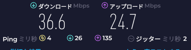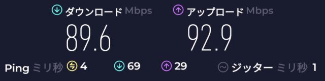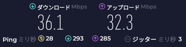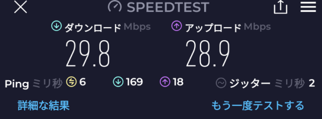 速度: Download: 29.8Mbps、Upload: 28.9Mbps