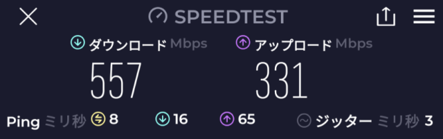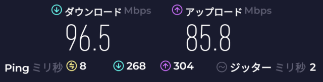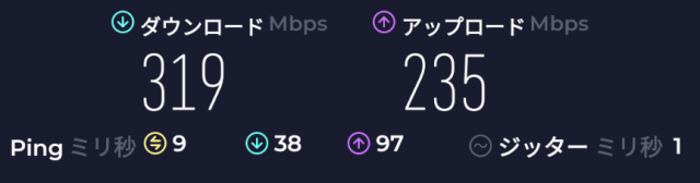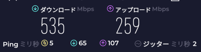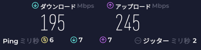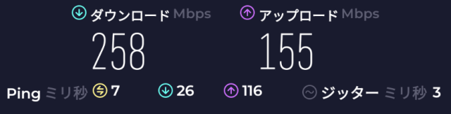 速度: Download: 258Mbps、Upload: 155Mbps