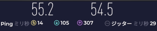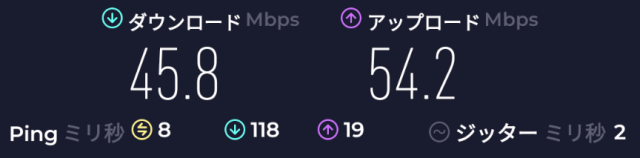速度: Download: 45.8Mbps、Upload: 54.2Mbps