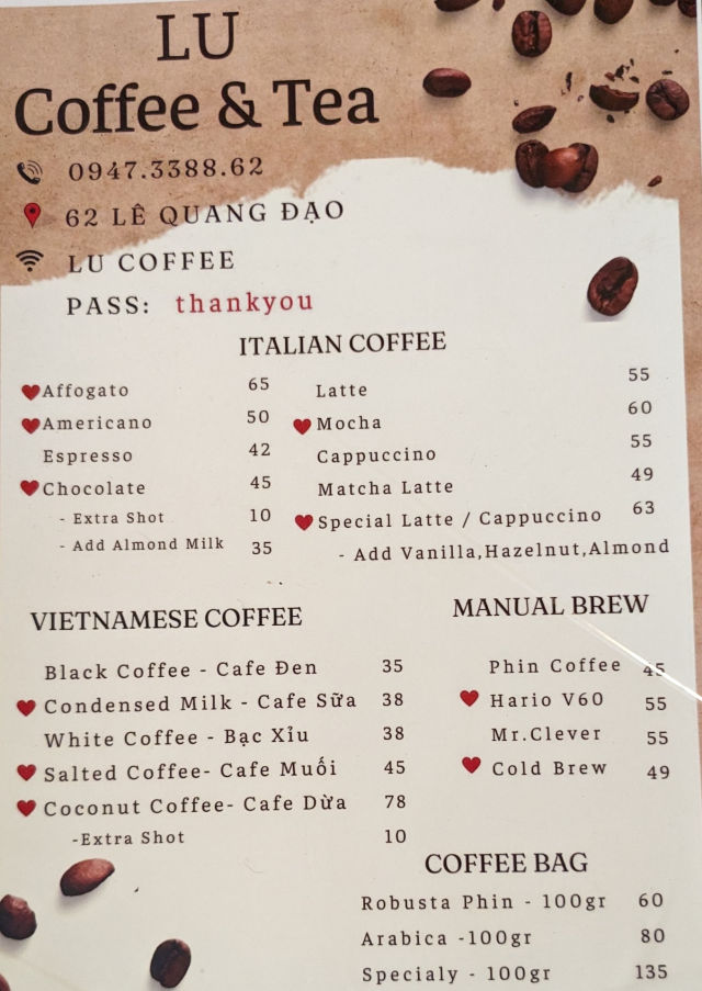 [Da Nang]Lu Coffee (8th Mar. 2024)(メニュー 一部)