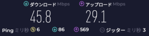 速度: Download: 45.8Mbps、Upload: 29.1Mbps