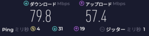 速度: Download: 79.8Mbps、Upload: 57.4Mbps