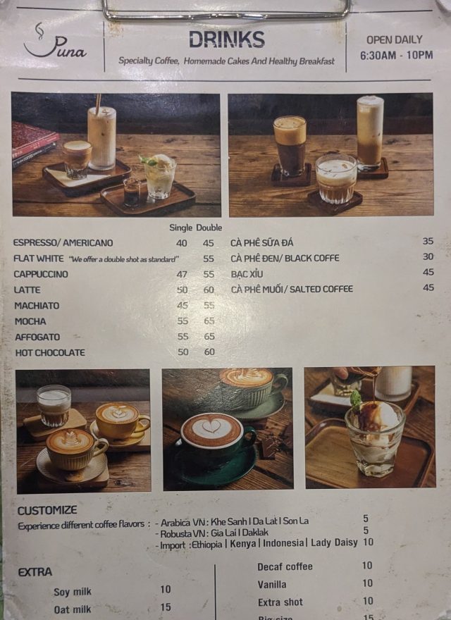[Da Nang]I’m coffee Tour (7th Mar. 2024)(メニュー 一部)
