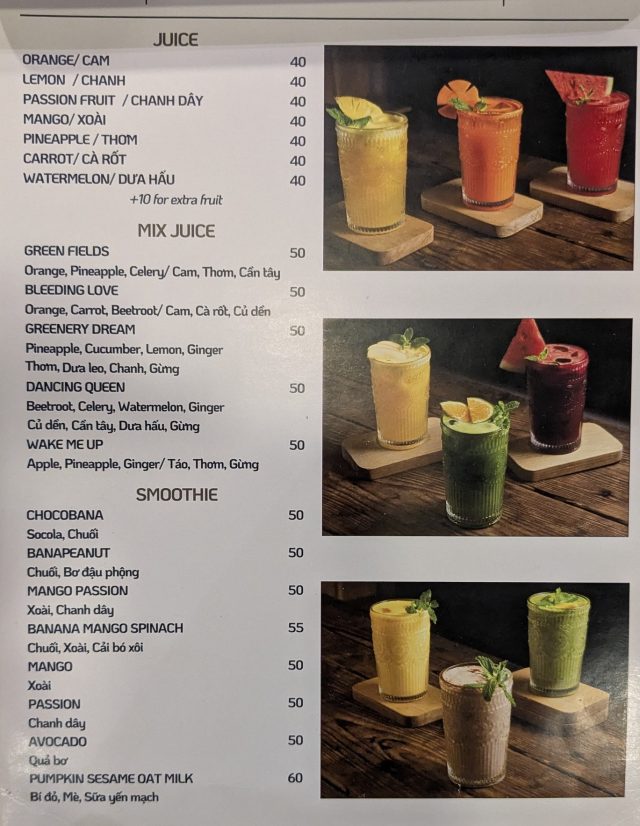 [Da Nang]The Hideout café(5th Mar. 2024)(メニュー 一部)