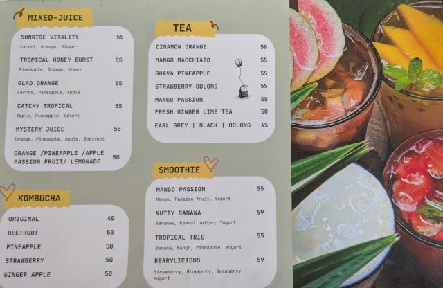 カフェの種類は豊富で、ジュースやスムージーなども種類豊富で一店でいろいろ楽しめるカフェです。