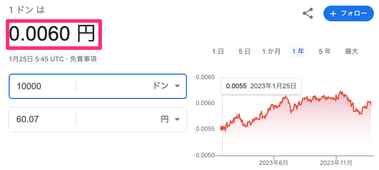 ホテル料金を調査した2023年1月25日の為替レート(Google Finance調べ)は10000VNDが60.07円でした。
