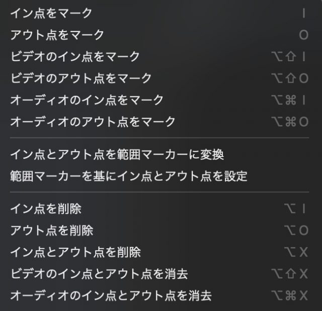 さらに、元々割り当てられてる(メニューの)「再生」と「マーク」のショートカットキーを使うことで、マウスに触れることなくキーボードのみでカット編集できるようになりました。