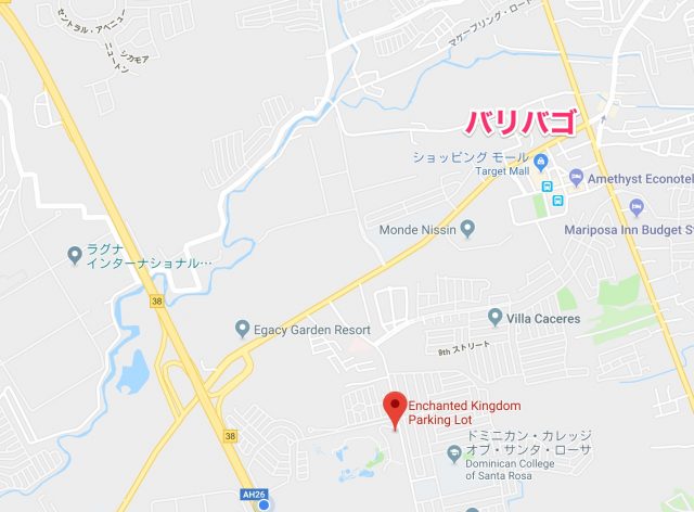 また、バス、ジプニーの交通機関を利用する場合、上図の右上のバリバゴ(Balibago)というところでバスからジプニーに乗り換えていくといいです。