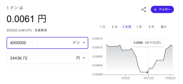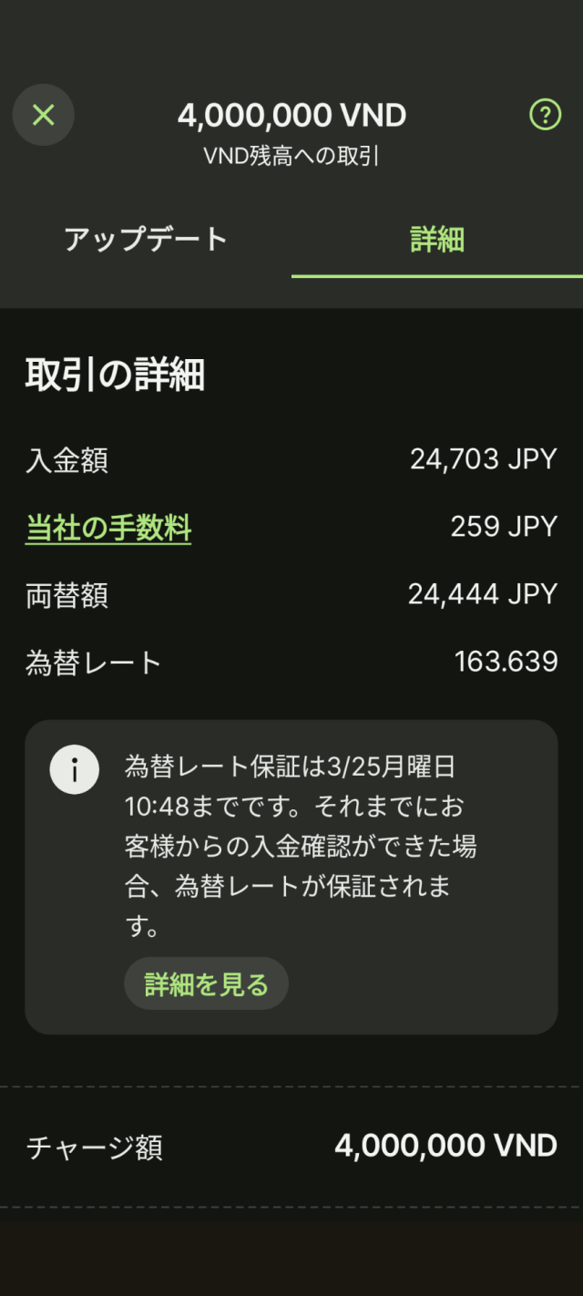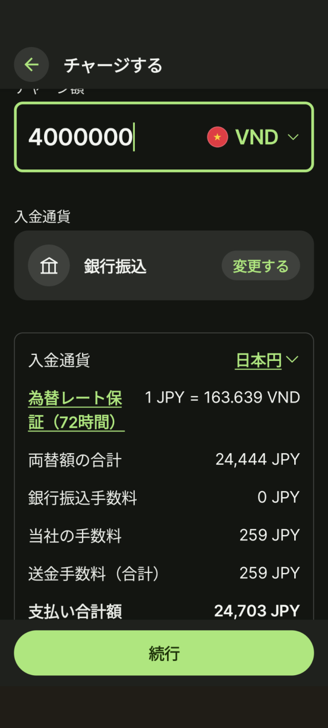 30,000JPY以上の出金手数料 = 4,000,000 x 1.75% = 70,000VND
