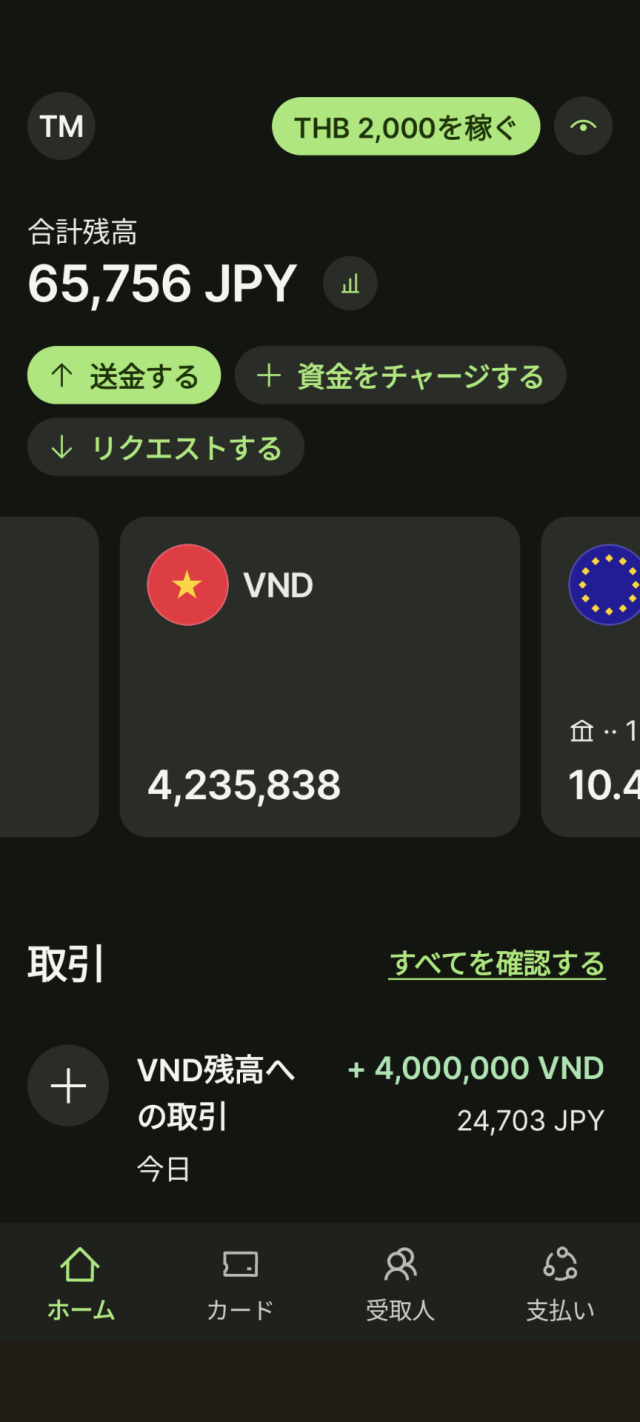 WISE ベトナムドン口座に送金・両替・ATM引き出し