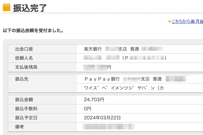 | WISE | 24,703円(24,444円 + 手数料259円) |