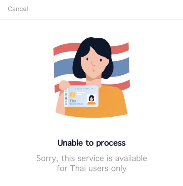 タイ人IDが必要とメッセージが出てTureMoney Walletが起動しません。