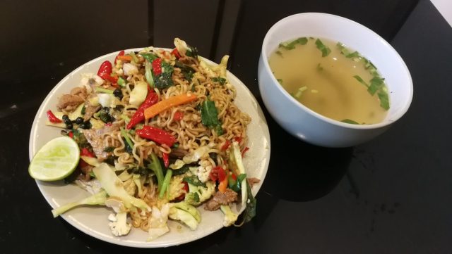 感想: 普通。イメージと全然違った。 チャーハンとエビ&野菜炒めだったはずが。。。昼晩2食分に。
