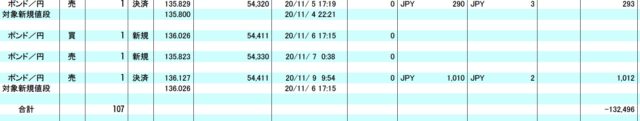 取引量があまりに多いので途中割愛しますが、11月9日現在、損失は132,000円にまで減りました。