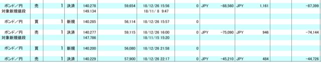 2018年10月末まではメキシコペソ、南アフリカランド円でコツコツ利益確定していき、そこそこのプラスに転換。