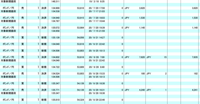 そして予想通り、ポンド円は暴落し、9月21日、134円から135円で3万通貨を買い戻しました。
