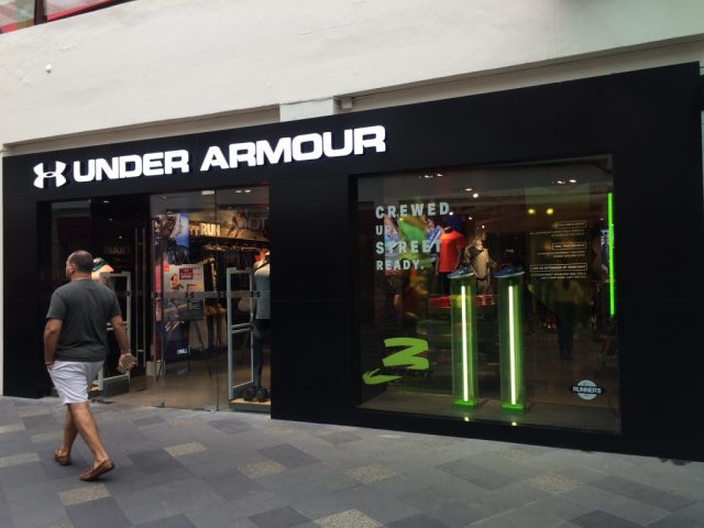 Greenbelt3の1階はスポーツ用品、靴、ちょっと高めのブランドの服が売られています。