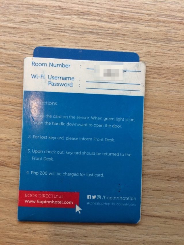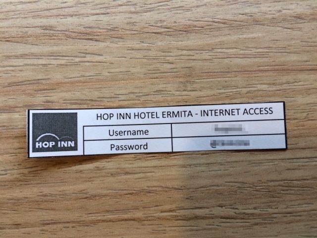 チェックイン時にこのWiFiのID、パスワードが書かれた紙をもらえます。
