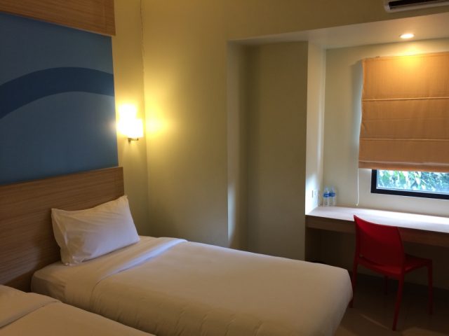 シングルはなくてダブルかツインになり、ベッドの大きいダブルが良かったのですが、この日はツインの方が安かったのでそうなりました。