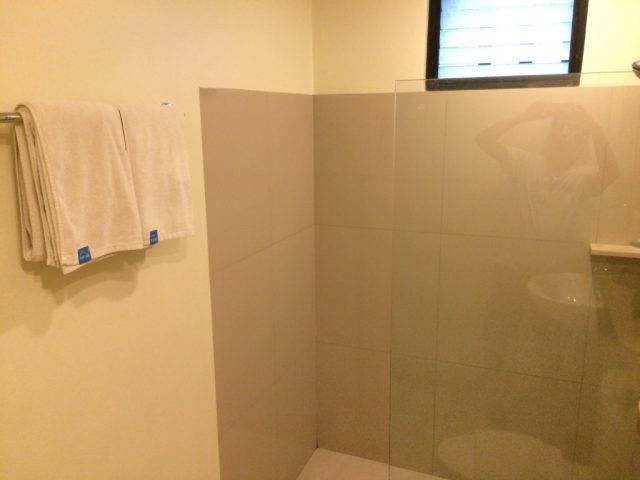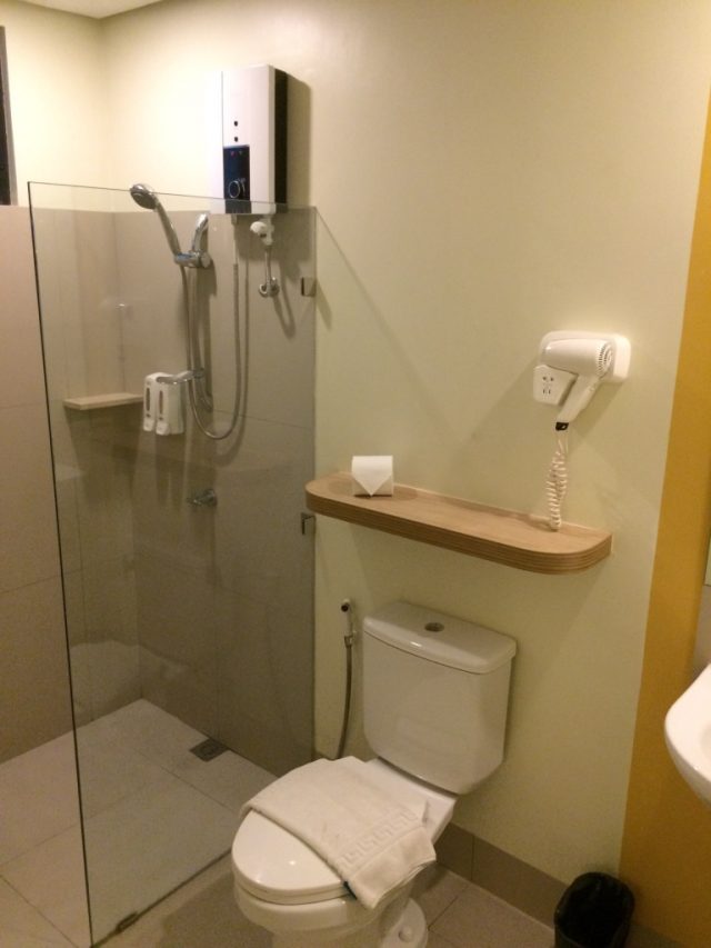マニラのコンドミニアム、ホテルで安い価格帯になるとシャワーの水量が弱く、お湯にしたらチョロチョロしか出ないところもよくあるのですが、ここのシャワーは必要十分です。問題なく使えました。