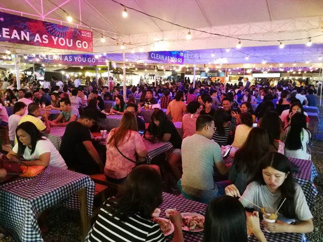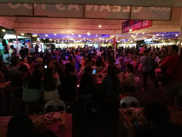 これはガーデンブロック(Garden Bloc)のエリアの様子。木曜、金曜、土曜だったか、決まった曜日にだけ夜オープンします。屋台がたくさんならんでいて、いつもすごい人が集まってます。フィリピン人がほとんどですが、韓国人も結構います。