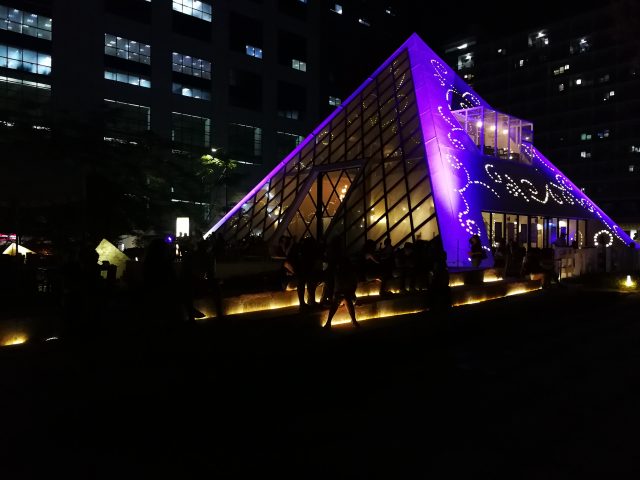 夜はガーデンブロック(Garden Bloc)というエリアが人気で人が集まっています。特に、このピラミッドはインスタスポットとして人気のようです。