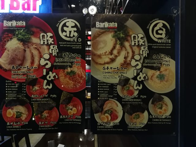チャーシュー麺が545ペソ。ここの価格設定は他店に比べて少し高めです。