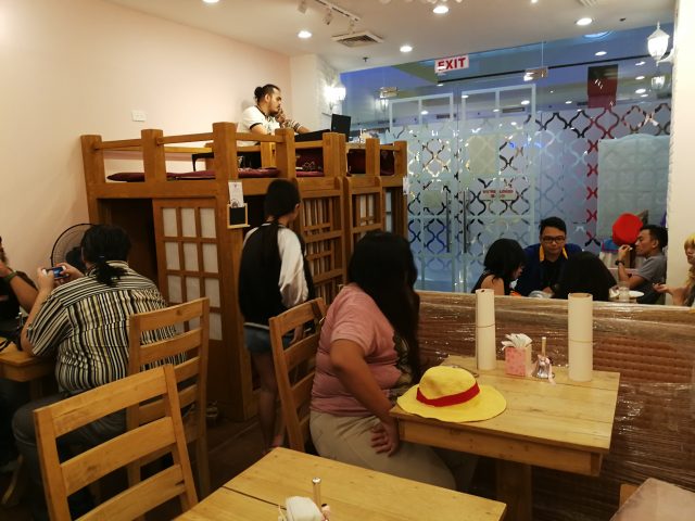 席数はそれほど多くないので、この日はオープン初日でかつ日本大好きイベントもあって、そこそこ席は埋まってました。僕以外全てフィリピン人。また、2段型の座敷もあります。日本ではあまり見かけないですが、セブにはCafe Talkなどにもあるスタイルです。