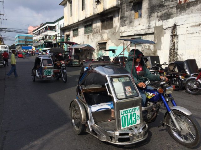 バスステーションにたくさんトライシクルが停まっているので、料金を聞いて乗るといいです。この写真はラワグの街で撮ったものですが。