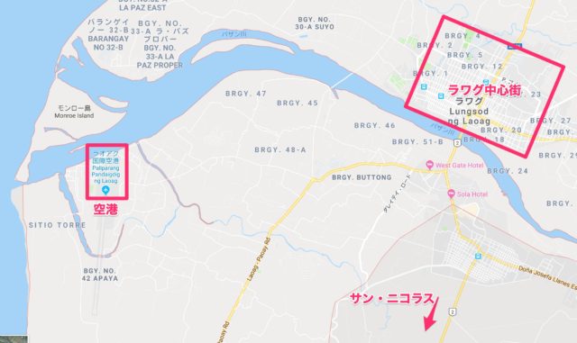 まず、ラワグ(Laoag)の位置を地図で確認します。