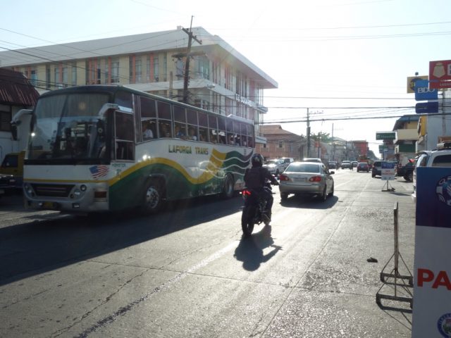 バスステーションから中心部まで1km以上あるので、スーツケースだと歩いてはちょっと厳しいです。バスステーションのトライシクルに乗って中心部のホテルに向かうことに。数十ペソです。