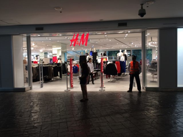 Greenbelt入り口正面にH & Mがあり、道が左右に分かれます。