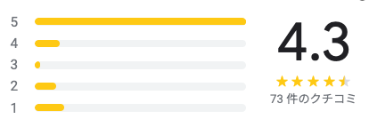 Google mapのクチコミ評価は高く、こうなってます。