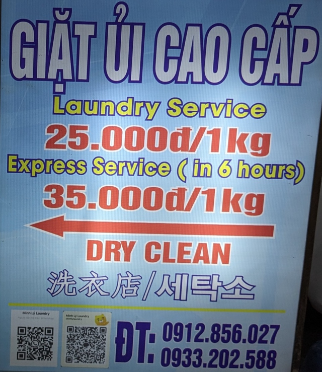 [Da Nang]ランドリー (12th Mar. 2024)アントゥンエリアでも川寄り、ビーチから離れるほど料金は安くなっている感じです。